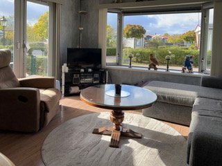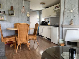 De woonkamer is groot en voorzien van oa een comfortabele bank, elektrische relax fauteuil, een 6 persoons eethoek, een buffetkast en tv meubel met tv. De open keuken is compleet ingericht met oa een koelkast, diepvries, magnetron en vaatwasser.